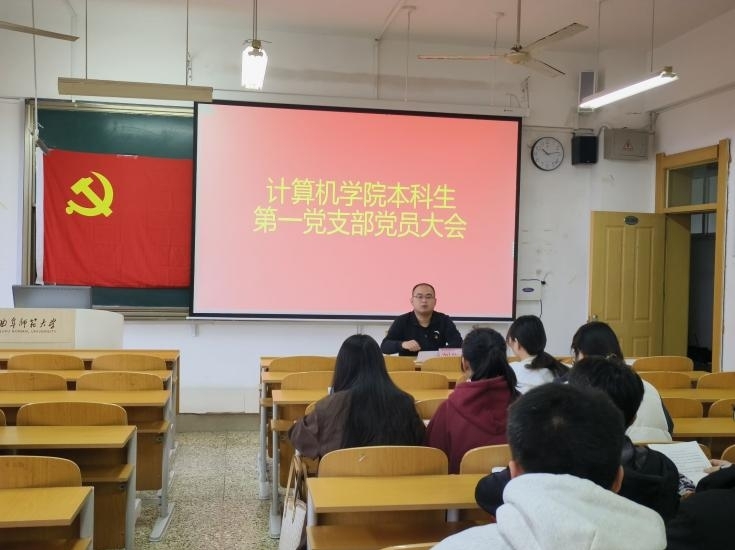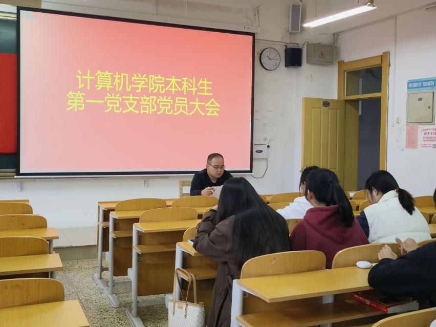 本科生第一党支部于JC405召开党员大会,全体党员参与。