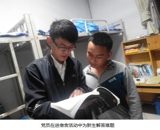 在接下来的一个周的时间里,党员们积极响应我院领导的号召,寻找时间进入到我院新生的宿舍中,热心帮助我院的新生解决学习和生活上的困难,其中涌现了很多杰出代表,他们还书写了进宿舍的心得,为所有的党员和同学树立了良好的榜样。(党员进宿舍心得详见下文)