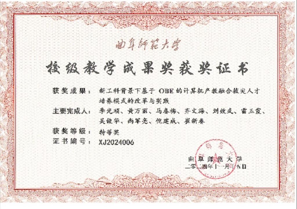 我院教师雷玉霞教授主持的《基于CDIO+课程思政的人工智能课程体系建设与创新型人才培养》省教改重点项目获批立项。同时,李光顺教授获校级教学成果特等奖,朱荣副教授获校级教学成果一等奖,为深化教学改革,提升人才培养质量,并为后续申报省级和国家级教学成果奖奠定了坚实的基础。