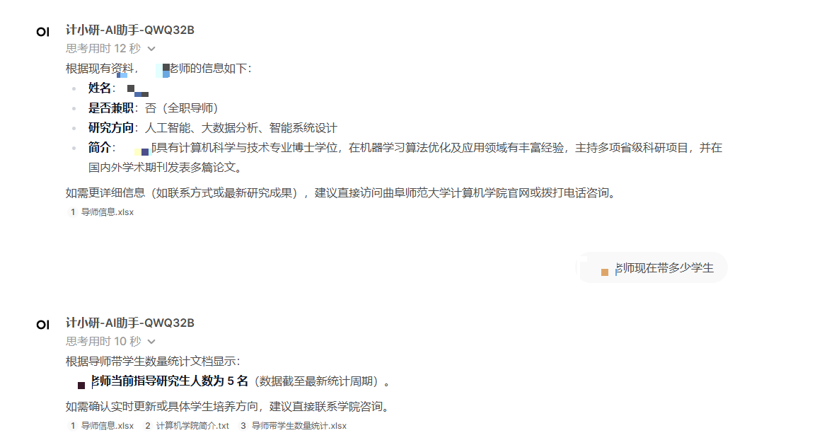 人工智能未来产业研究团队尚军亮教授、闫超副教授联合日照数云图信息科技公司共同研发的"计小研-AI助手"正式上线。该系统采用本地化部署的DeepSeek与QwQ-32B大语言模型,构建起覆盖研究生教育全周期的智能服务体系。