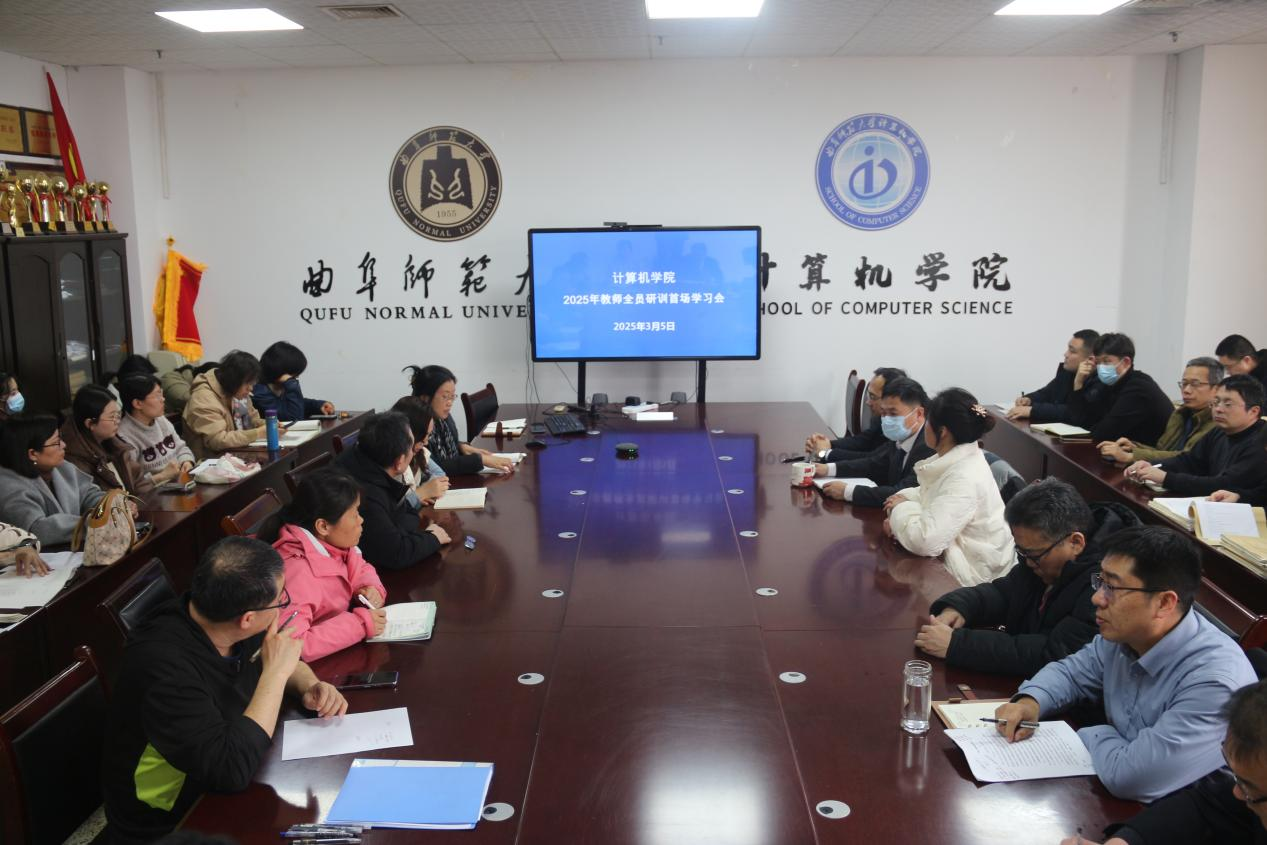 在C1011会议室召开2025年教师全员研训首场学习会,本次学习会由党委书记张明洁主持,全体教职工参加。