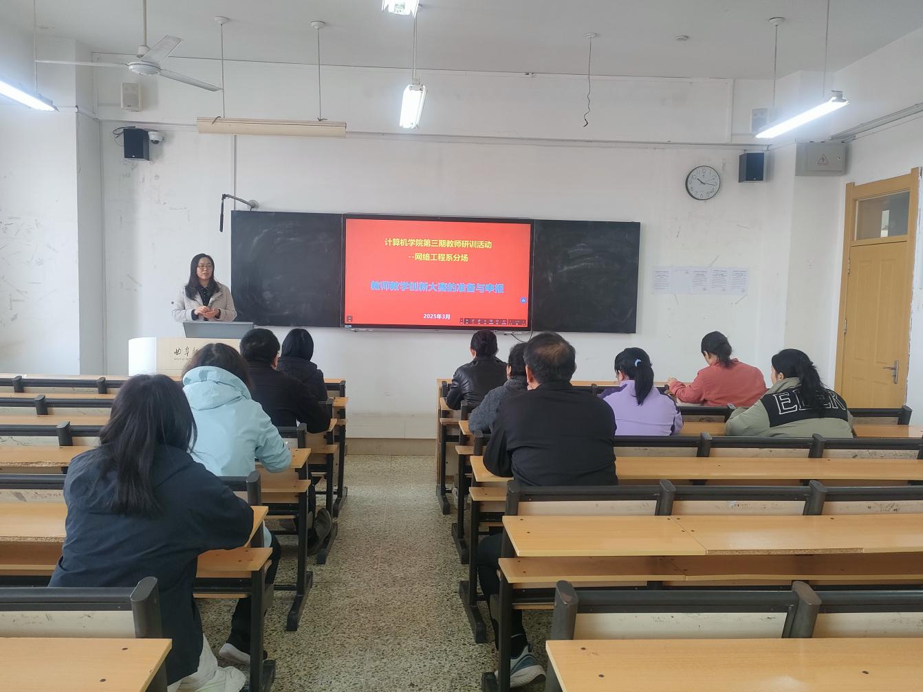 网络工程系举办了主题为“教师教学创新大赛的准备与申报”的研训活动。马春梅副教授围绕大赛核心要求,从创新教学设计、申报书撰写技巧、现场答辩要点等方面进行深度解析,结合往届优秀案例剖析“以学生为中心”的教学理念落地路径。研训会间,教师们就“如何平衡技术创新与教育本质”“跨学科课程设计策略”等问题踊跃提问,现场交流氛围热烈。