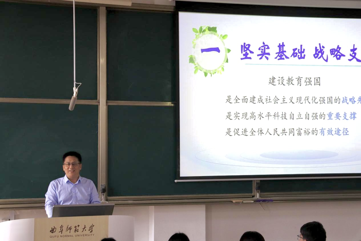 “我们要成为怎样的人?成为怎样的教师?”胡凡刚在课堂上向师范专业的同学们发出青春之问。他表示,2035年教育强国目标的实现,正处于当代青年成长发力的黄金十年,希望同学们坚定理想信念、保持奋进姿态,珍惜时间,科学规划人生,以终身学习的定力和全球化的视野,积极投身中国式现代化伟业,锚定2035年建成教育强国的奋斗目标,跑好历史的接力棒,书写以教育强国支撑中国式现代化的青春答卷。