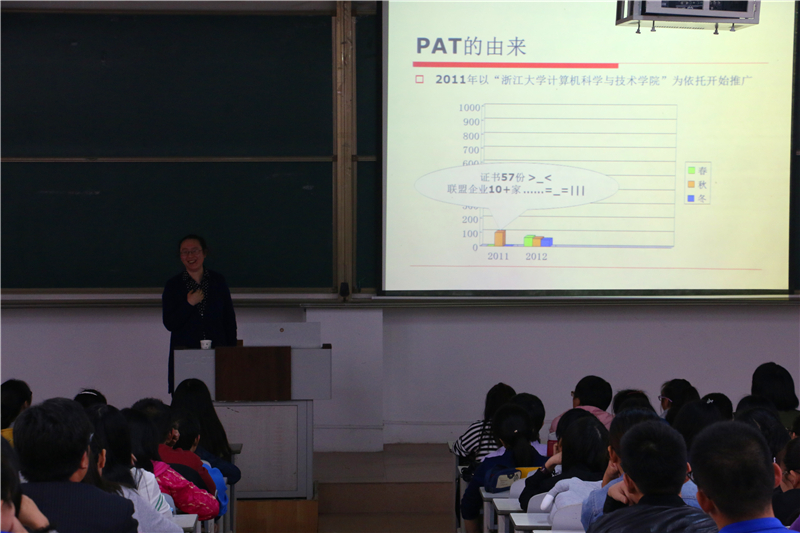 通过此次报告,同学们对PAT考试和国内外各大计算机相关企业的用人需求及考核标准有一个客观的认识,有利于提高同学们毕业后应聘时的竞争力,促进了同学们的学习的积极性。