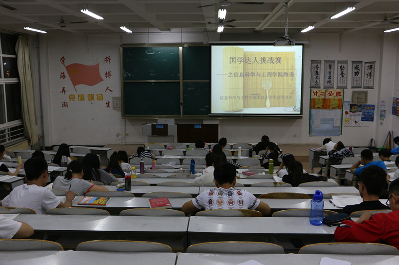 为深入学习贯彻党的十八届三中、四中全会精神,大力弘扬中华优秀传统文引导广大青年学生培养高尚的个人品德,培育践行社会主义核心价值观,促进青年学生全面发展,在全校范围举办“国学达人”挑战赛。5月13日下午晚7点30分,信息科学与工程篮球直播吧
