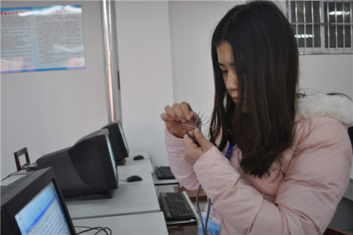 分为“初赛”和“决赛”两部分的本次比赛,经过激烈的角逐,有八位同学进入到决赛中。决赛一个小时,题目是关于拓扑网络总部分部的通信,主要考察学生分析问题解决问题的能力。选手们运用自己所学到的知识,严格按照实验室要求进行操作。评委老师们则紧随选手,仔细地察,看选手的操作是否规范、仪器的使用是否正确。最终,由专业评分老师为选手的实验操作、成品与效果等进行综合评分。
