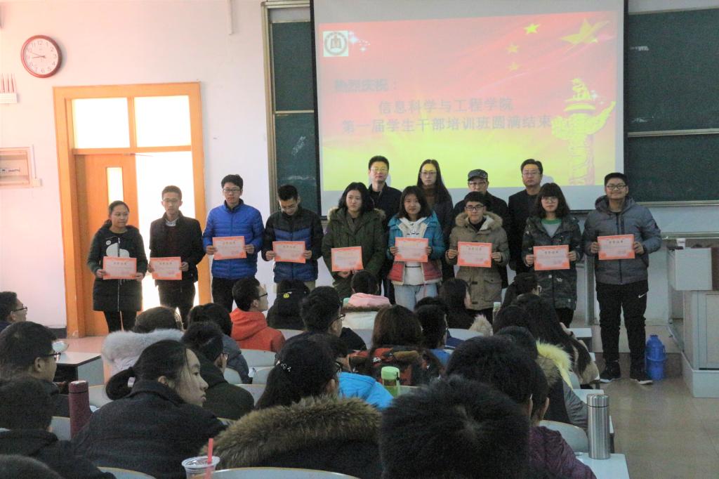 12月17日上午8:10,2017级学生干部培训班结业仪式在E305圆满结束,校团委副书记刘蓉,党委副书记肖龙航,团委书记毕文波,辅导员姜振栋,篮球直播吧