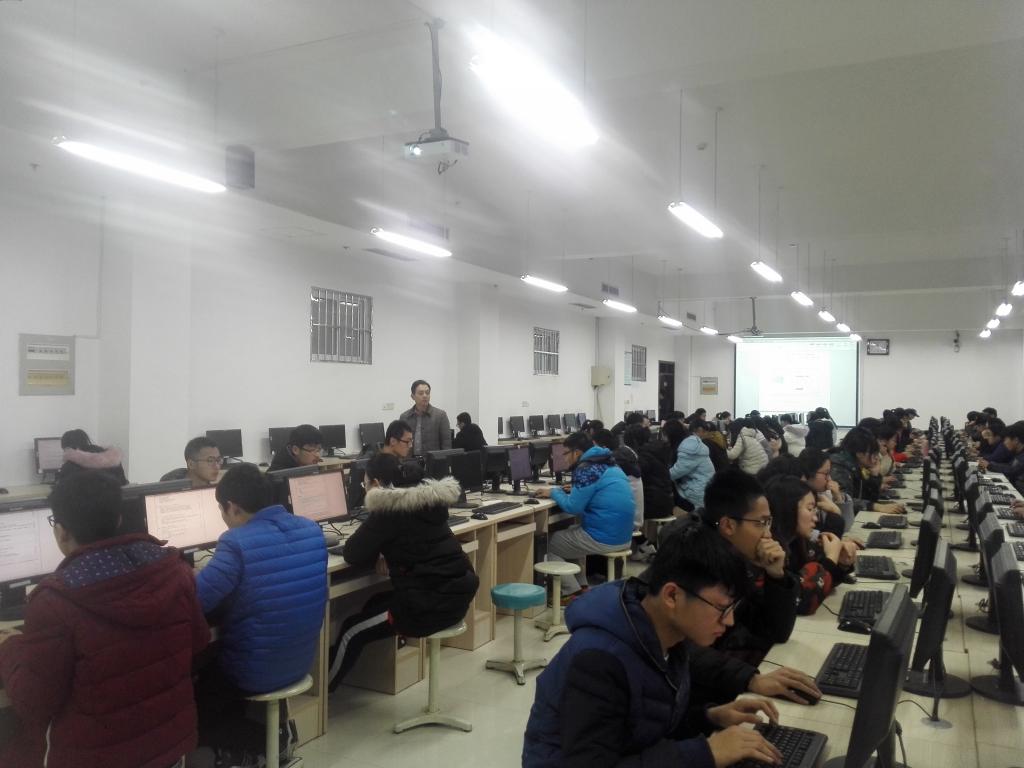 2018年1月17日上午,我院2017级400多学生,在S楼篮球直播吧 实验室利用校企合作企业英谷公司开发的网上在线考试系统,进行《计算机导论》这一课程的网上在线考试。这是我院在实践教学新模式探索过程中,继前不久的《C语言程序设计》期末工程实训后的又一新举措,后续《C语言程序设计》、《JAVA程序设计》和《数据结构》等课程也要采用这种网上在线考试形式。