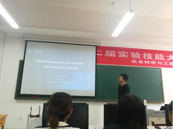邀请,乔治华盛顿大学博士生刘春池于2018年8月16日上午10:00在JS417做了题为“Blockchain privacy and security:A NormaChain example”的学术报告。本次报告会由篮球直播吧