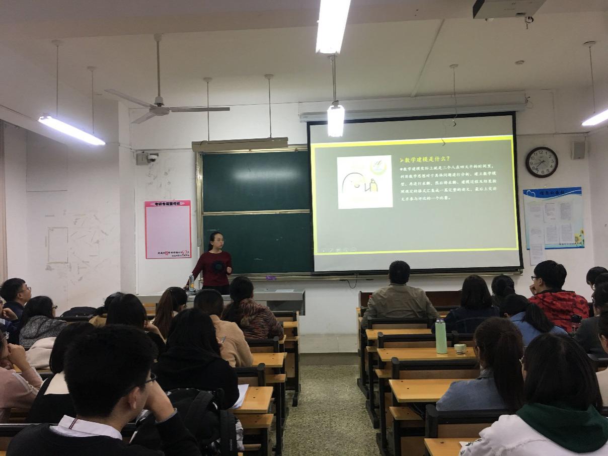 本次交流会由宣传部部长张颖主持,交流会分为学术交流、解答疑问两个环节。在主持人简单介绍活动流程后,尚军亮老师发表讲话。随后李晓晓和孙英霞同学介绍了自己的经验感悟,王婧同学用幽默风趣的语言和生动的PPT为同学们展现了研究生数学建模的一般流程和注意事项;崔震同学详尽地介绍了论文撰写的具体流程,使同学们对论文的写作有了一定的了解;由第十届研究生会主席曹倬铭同学为大家分享学生干部工作和人际交往方面的经验,经验聚焦于“奋斗”、“担当”、“仁爱”、“认真”和“感恩”五个方面;最后由纪检部负责人林青燕和学习部负责人王丽辉两位同学为大家讲解了关于纪律和学位取得、学习成绩要求等方面的注意事项。随后,开展答疑互动环节,主讲人们解答2018级同学提出的疑问,尚军亮老师对解答做了全面深刻的总结。会议最后,研究生会主席闫月对本次交流会进行了总结。