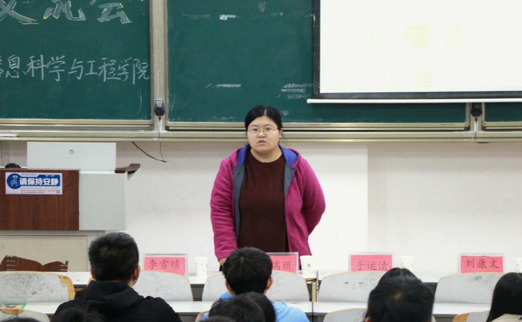 各类活动,端正学习态度,重视实践能力,全方面提升自己。随后,2016、2017级的优秀学生代表依次进行经验介绍。2016级大数据班孙万众、计三班李欣萌、网络工程班李清华、免师班吉翰云依次讲解有关山东省大学生软件设计大赛、数学建模、网络安全、HTML5方面的知识内容,鼓励大家积极参加各类科技比赛;2016级大数据班李雪晴与2017级计二班管峥朝分别从日常学习和大学规划两方面向在场同学展示大学学习的方法和意义,赢得了观众的阵阵掌声;2016级3D班朱校结合实例,向同学们介绍评价评优标准。