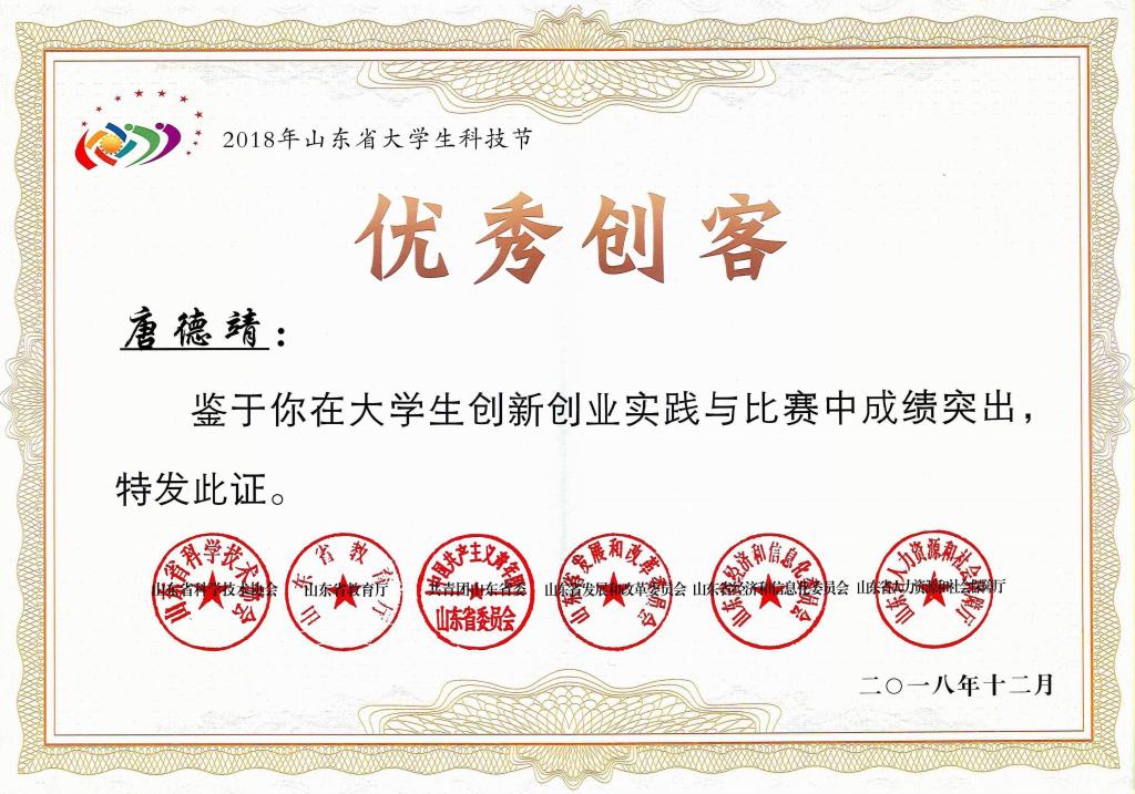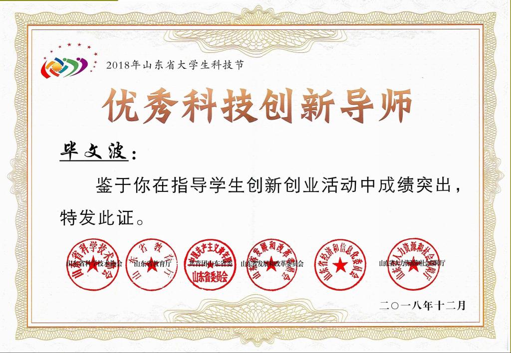 团委书记毕文波、2016级学生唐德靖获评山东省优秀科技创新导师和山东省大学生优秀创客。