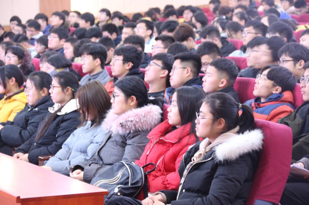 党委副书记肖龙航、副院长李光顺、院长助理赵景秀、团委书记毕文波、本科生党支部书记于运清、18辅导员老师鲁瑞丽,2018级班主任老师王华、刘效武、雷玉霞以及2018级全体同学参加了此次活动,大会由团委书记毕文波主持。