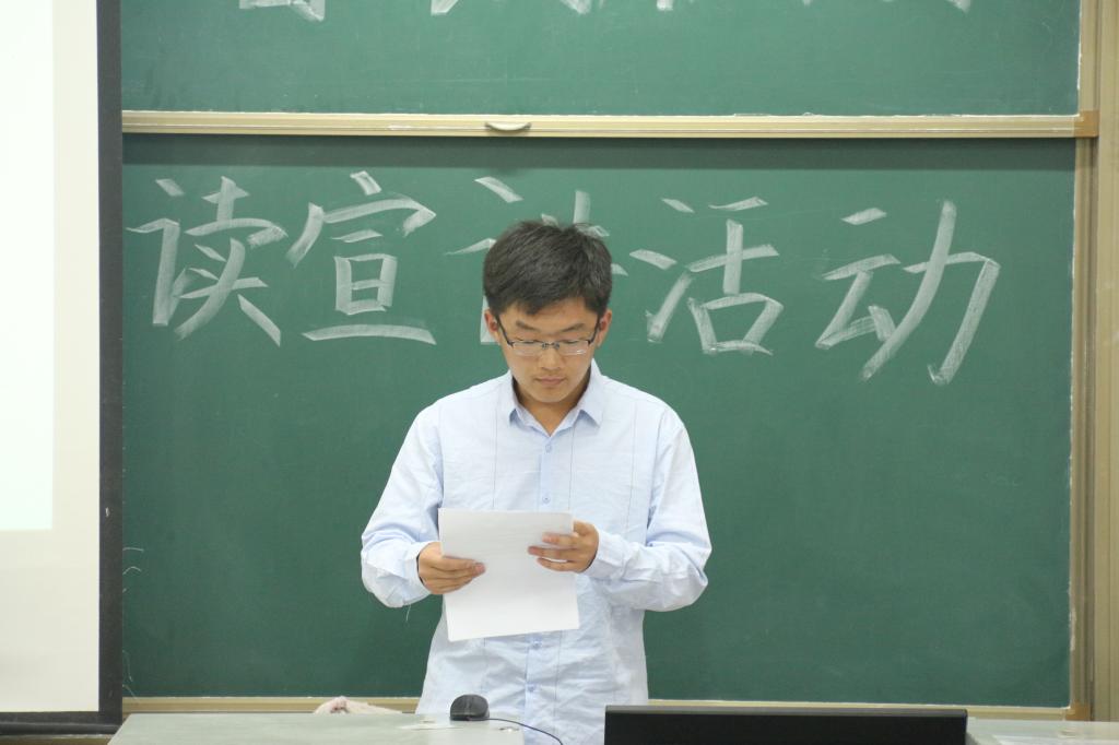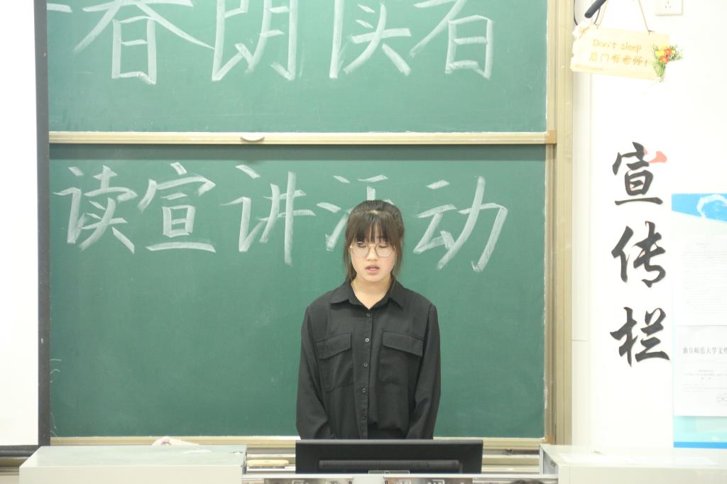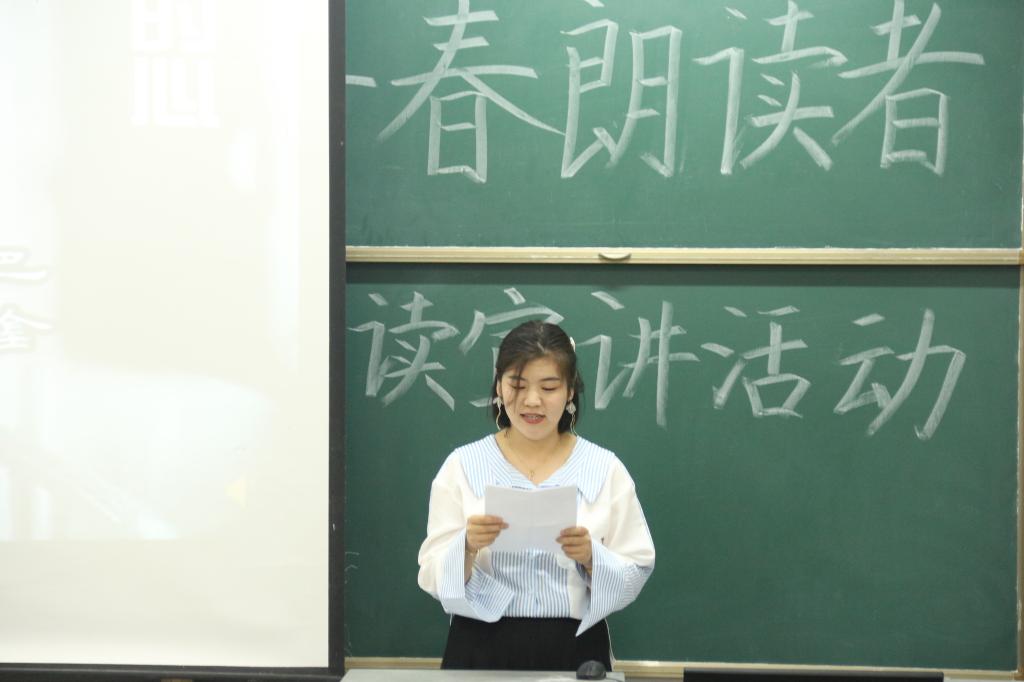 活动伊始,主持人首先简单回顾了五四的历史并详细介绍了本次活动规则,“青春朗读者”活动通过一本书、一段文章、一首经典诗词结合个人成长、背景故事、思想感悟的方式,面向全体学生,力图实现以文化感染人、鼓舞人、教育人。所有到场参赛人员通过赛前抽签确定出场顺序,参赛选手围绕“五四,我们的青春回忆录”将个人成长、背景故事等与朗读内容完美融合在一起,通过朗诵配乐、PPT等形式进行了3-5分钟的宣讲,同学们精彩的宣讲极富有感染力。最后,郭金翟、李沐泽同学顺利进入决赛。
