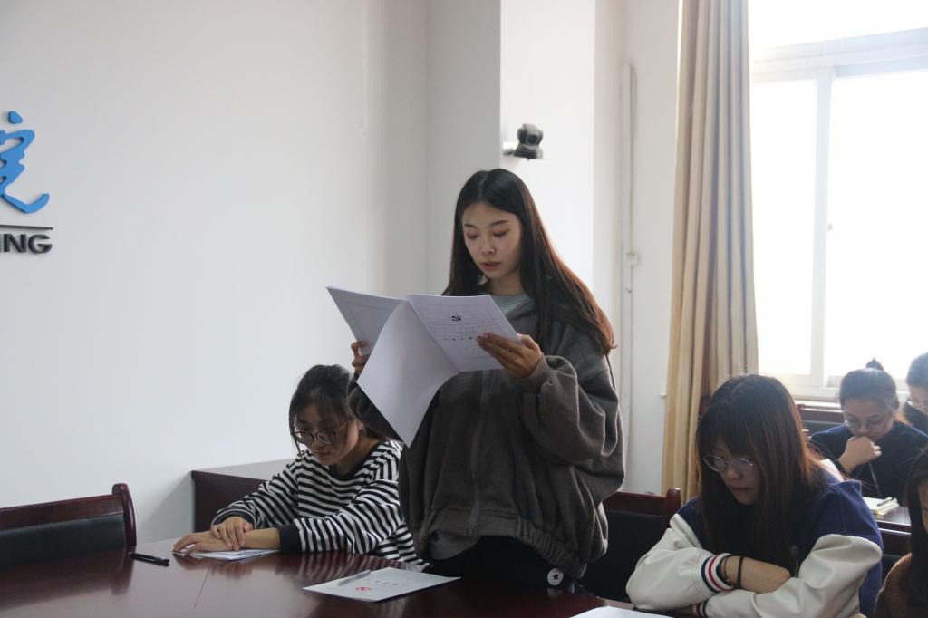 大会在庄严肃穆的国际歌中拉开序幕。随后在于运清老师的主持下,由王馨梅、张雪婷、刘光照、房明灿、刘军宏、禚玮艺、刘同壮、张雪皎、汪纳川、徐以英、夏林浩、鞠畅、邱恋卿、张梦婷、曲雪十五位发展对象宣读入党志愿书,并分别由入党介绍人宣读入党介绍词。宣读完毕后,由正式党员进行无记名投票。根据表决结果,于老师现场宣读结果,确定以上十五位同志为预备党员。接着,党委副书记肖龙航发表了讲话,肖书记首先对预备党员表示热烈的祝贺,随后总结了我院近期以来取得的各项成绩并加以赞扬和肯定,鼓励同学们在自己的岗位上尽心尽力,做好本职工作,努力学习专业知识,弘扬担当精神,锐意开拓进取,在前进的道路上踩出有力的脚印。同时也希望同学们能在今后的学习和工作生活中进一步加强自我要求,以良好的风貌做好学生表率。最后,肖书记着重强调了入党材料的严密性、逻辑性和规范性,要求党务工作务必认真仔细,做到一丝不苟。