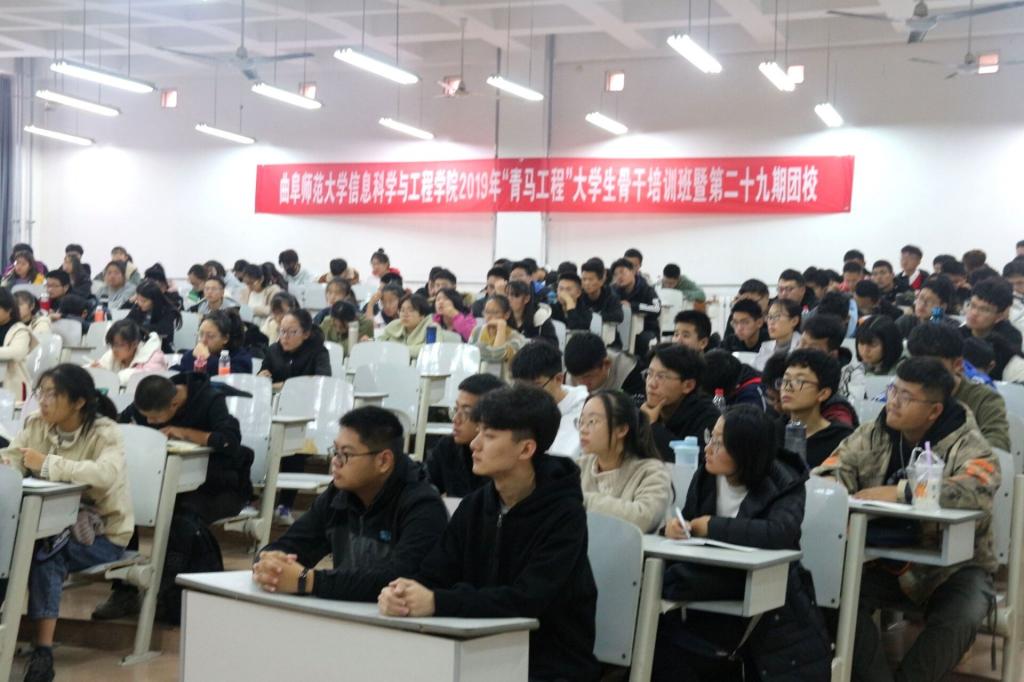 “青马工程”大学生骨干培训暨第二十九期团校在JA105教室正式启动。校团委副书记刘蓉、心理健康指导中心指导老师陈学宁、信息科学与工程篮球直播吧