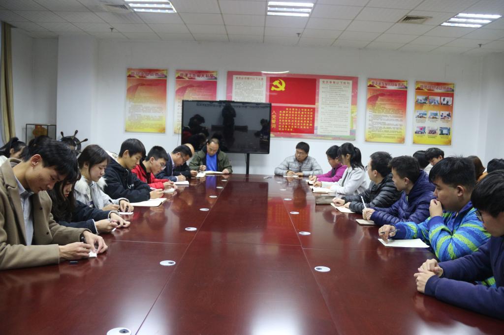在JC1011召开处级干部联系班级专题会议,党委书记张书东、党委副书记肖龙航、团委书记毕文波、本科生党支部书记于运清、辅导员鲁瑞丽、国际交流合作中心副处长马腾出席本次会议,17、18级学生代表参加本次会议,会议由党委副书记肖龙航主持。