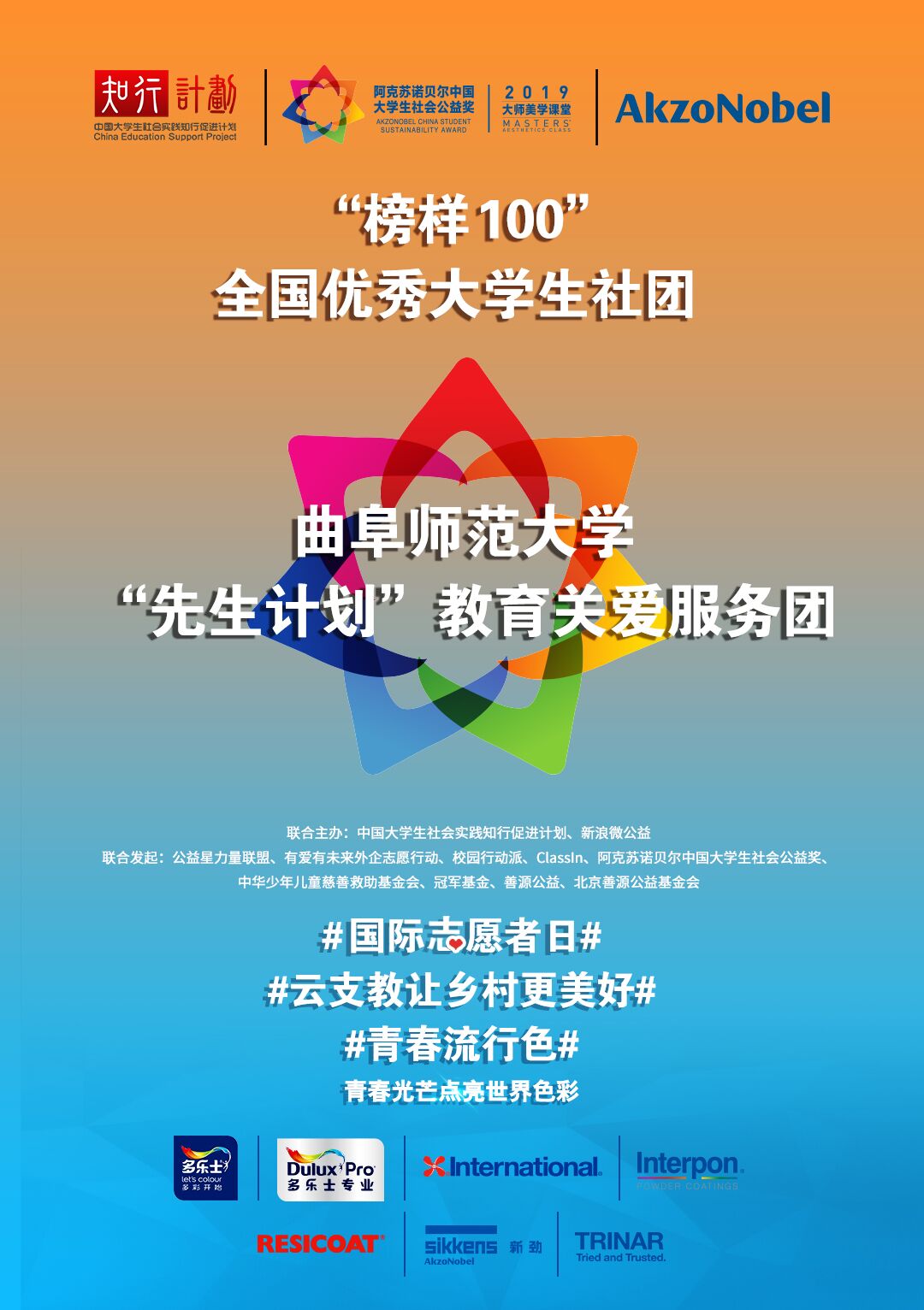 辅导员鲁瑞丽指导的“先生计划”教育关爱服务团被评为“榜样100”全国优秀大学生社团。