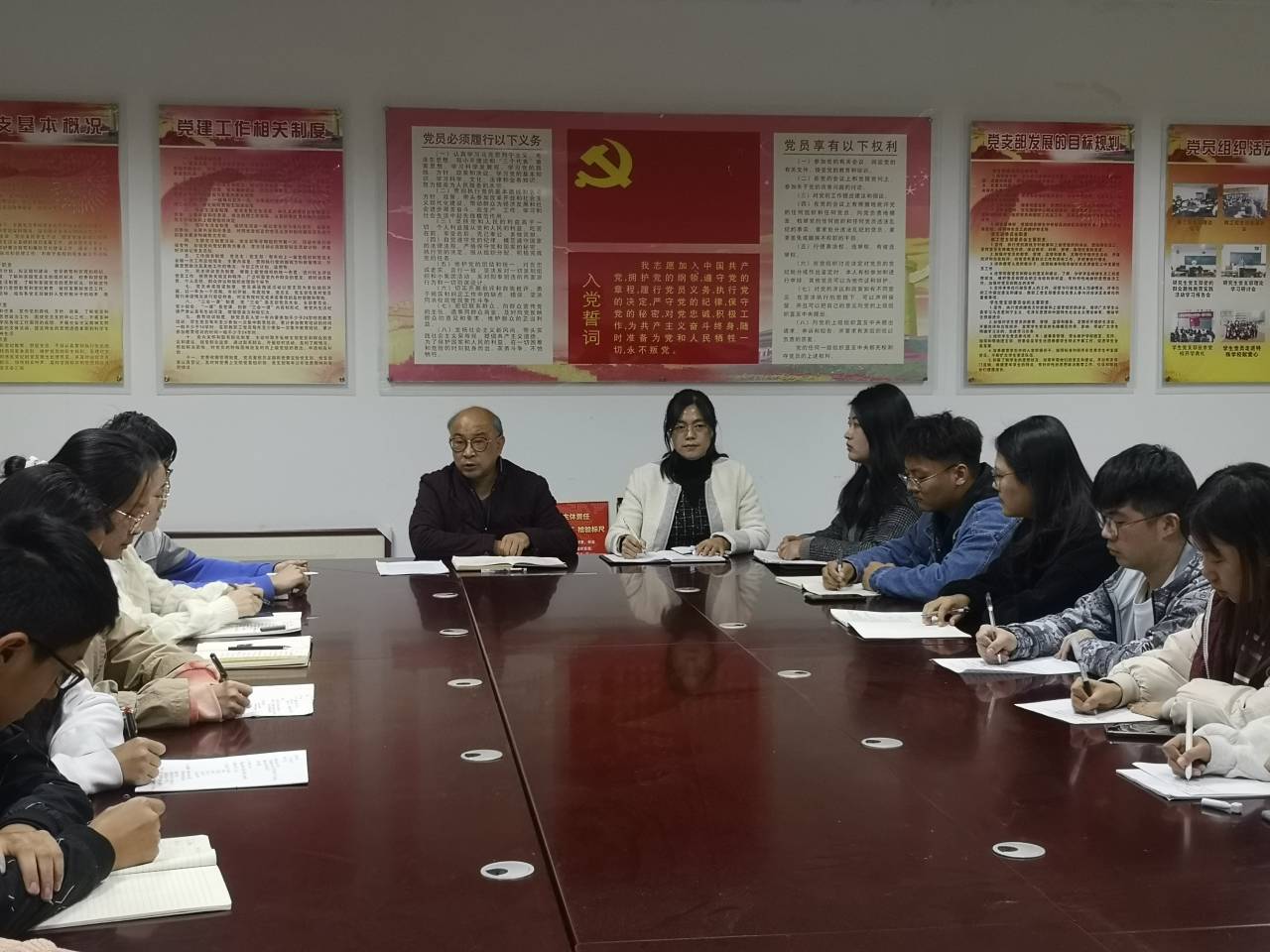 党委做好党员发展教育管理工作。随后,肖书记就党校工作分四方面作出指导。首先肖书记指出,党校成员要有政治敏感性,即对国家重大政治事件的敏感性,提前做好预判;第二党校成员的工作应具有全面性,党校成员要充分了解党的理论宣传教育、党员档案管理、各类学习平台的教育以及毕业生党员组织关系转移等一系列工作;第三肖书记重点对党员的发展教育管理工作进行强调,提出对党员要做到全程性培养,即从递交入党申请书到毕业党员组织关系转移整个流程,党校成员应按照相关文件,积极与老师、同学协商,既要确保材料的严谨性,又要保证档案的全面完整性,推动党校工作顺利开展。第四肖书记向全体成员提出工作要求,首先应熟悉各类党务文件,工作流程,在工作中要有原则性,有组织,有政治敏感性,跟上时代的政治潮流;做事要细致、严谨、全面,同时更要严格遵守党务工作纪律。最后,肖书记希望党校全体成员认真务实,负责担当,严谨、细致地完成各项工作,努力成为优秀的学生干部。