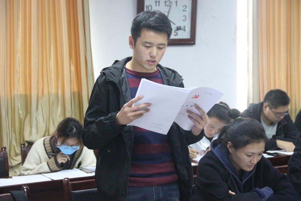 会议伊始,大会全体成员庄严起立,并奏响国际歌。奏歌完毕后,肖书记首先对会议流程及个人转正流程进行强调,他指出,预备党员纳新是一个严肃而又庄重的过程,一定要严格按照组织部要求进行纳新工作,绝不省略环节,绝不降低要求。随后,预备党员在全体会议成员的见证下依次宣读自己的入党志愿书和汇报个人经历,并由其入党介绍人宣读介绍词以及党支部委员会汇报政治审查结果。紧接着,到会党员对发展对象进行评议,肯定了每位发展对象的优点并指出他们身上的不足,发展对象态度诚恳,认真反思,面对大会全体成员接受评议并决定努力改正错误,提升自身素质,以优秀党员为榜样,不断提升自己,完善自己。最后,发展对象均顺利转正为预备党员,肖书记结合自身经历对会议全体学生进行教育并对会议内容做出总结。