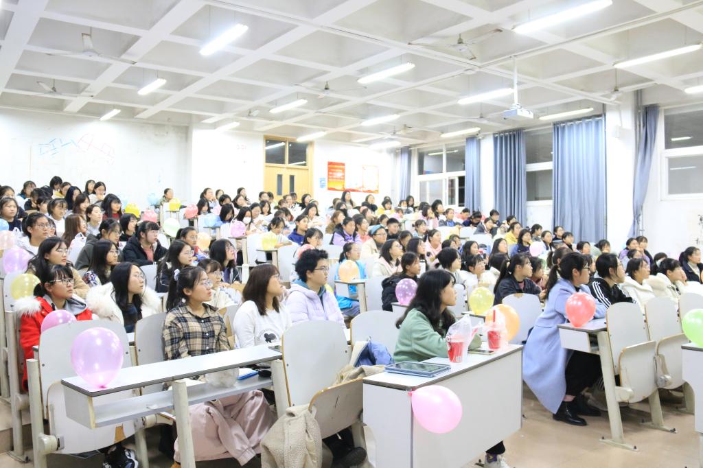 活动第一项内容,于老师就作为新时代女大学生在大学四年里如何提升自己,保护自己做出详细指导。第一个方面:与异性朋友的相处与交往。女生应树立正确的恋爱观,切忌盲目攀比,认真对待并学会用智慧处理感情中的问题,确定正确的人生方向。于老师强调,现在的大学生想法开放、前卫,更应学会自尊自强。第二个方面:安全指导,共分为财产安全、出行安全、宿舍安全和人身安全四个部分。首先是财产安全,于老师用幽默诙谐的语言列举“杀猪盘”、“PUA”等事件以此告诫女生在日常生活中怎样避免财物和感情的双重损失。其次是出行安全,于老师提醒同学们出门在外要当心,注意自身安全,网上约车需谨慎,要利用正规平台。同时还告诉同学们安全乘坐网约车的基本常识:如牢记车牌号码,不在偏僻路段上车等。接着是有关宿舍安全问题,于老师讲到,注重美丽是正常的,但不可在宿舍使用电吹风、卷发棒等违规电器,避免宿舍引发火灾而造成不必要的损失。最后是人身安全,女生尽量不要去酒吧,外出时多和熟悉的人结伴,如若真的遇到危险时不要惊慌,要时刻保持头脑冷静,寻找脱身的方法。活动第二项内容,由女生部为全体参会女生介绍美妆知识。面部底妆到唇部彩妆的教学,化妆工具的选择到清洗的讲解,多角度全方面介绍了化妆的基本知识。活动最后以放映美妆博主视频教程的形式结束本次讲座。