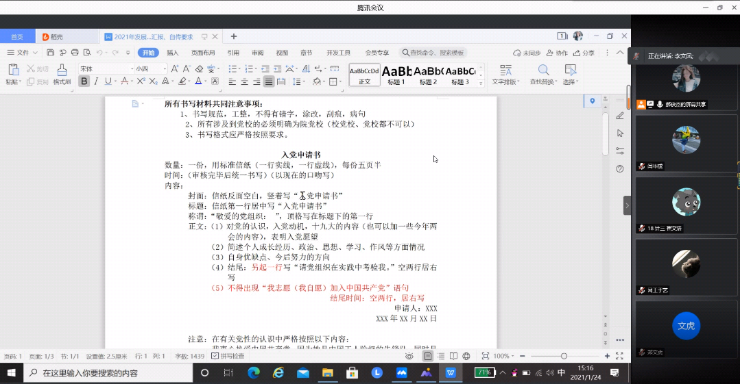 分党校成员首先给大家介绍确定发展对象的要求,希望大家以严肃认真的态度对待入党。就发展对象在培养期间准备材料的手续和具体程序,分党校成员进行详细讲解,其中着重讲解有关材料准备的问题,包括入党申请书、思想汇报、自传、入党志愿书的写法及书写格式,强调入党材料的严肃性和重要性,材料不能有刮痕、涂改,思想要具有先进性、条理性。同时对发展对象提出的相关问题进行解答,以使材料准备工作顺利进行。最后分党校成员向大家传达肖书记的三点希望和要求,一是加强学习,假期期间通过线上集中培训和个人自学相结合的方式加强理论学习,并能做到学以致用,知行合一;二是提高效率,工作要讲究计划性、系统性和科学性,要做到想好、说好、写好、做好“四好”;三是落实落细,紧紧围绕学校相关要求以及篮球直播吧