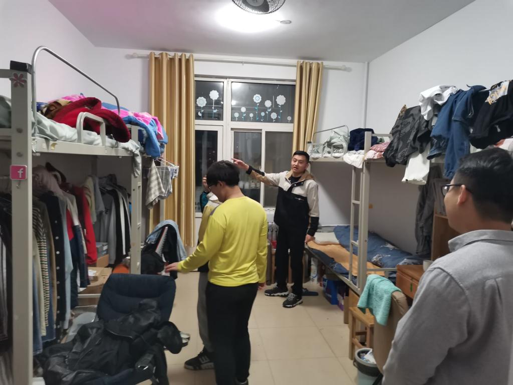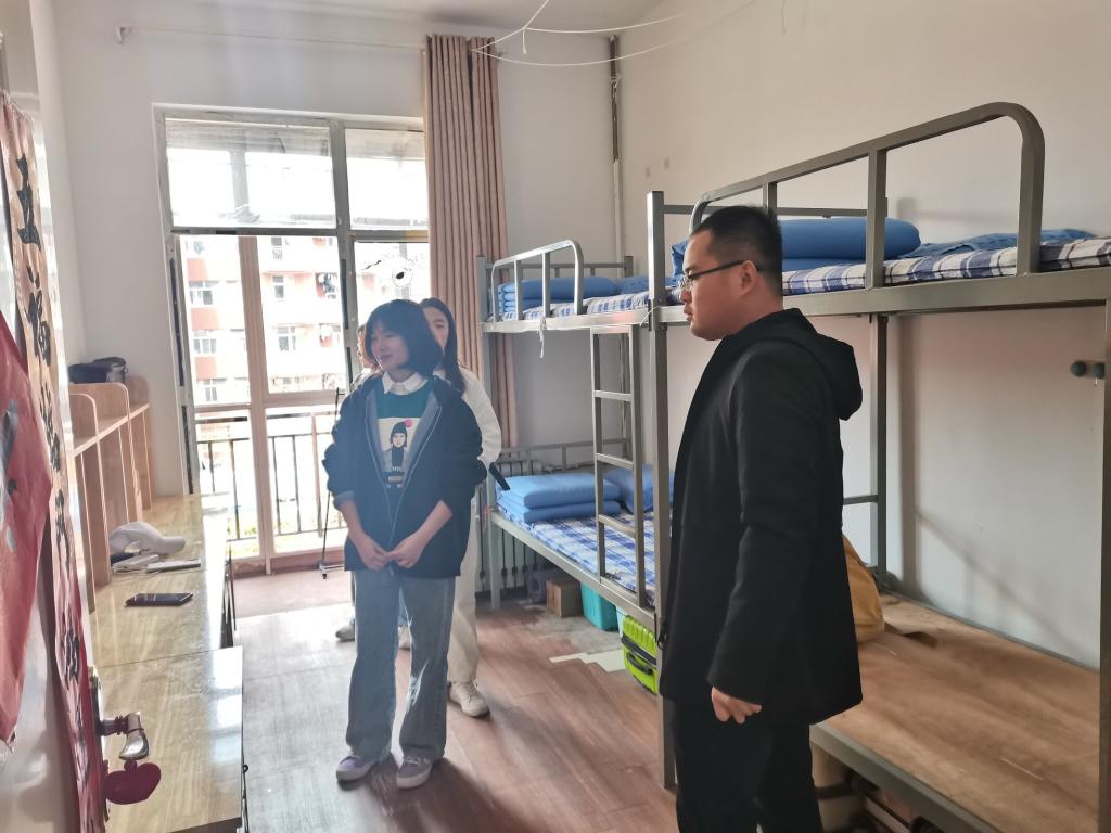 党委副书记肖龙航带领各年级辅导员以及排查小组成员深入学生宿舍,对宿舍安全隐患进行彻底排查,全方面落实我院的安全教育工作。排查过程中,各位老师提醒四季花园学生在阳台改造期间注意安全,小心玻璃,以免受伤。