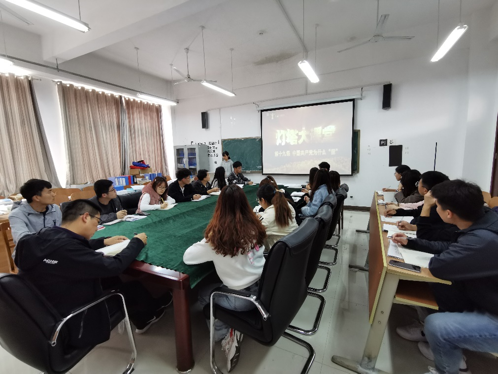 随后,大家一起观看了“灯塔大课堂”第十九课《中国共产党为什么“能”》。通过对党的历史的回顾学习,加深了对中国共产党的理解,正确认识为什么中国共产党能取得如此辉煌的执政成就,为什么已经成立近100年、执政超过70年,依然能够充满生机和活力等问题。最后,全体参会成员进行交流,组织委员邹麒表示,我们要认真学习党史,在学习党史的过程中明理、增信、崇德、力行,学党史、悟思想、办实事、开新局,既要不忘来时的路,更要走好前行的路,发扬红色传统、传承红色基因。纪律委员顾一君表示,实现共产主义是中国共产党的理想和最终目标,实现这个远大理想是一个漫长的历史过程,需要一代代共产党人坚持不懈接力奋斗。党支部书记尚军亮老师表示,作为新时代的青年党员,要更继续奋斗,永葆对党的忠诚之心、对人民的赤子之心,书写新时代新篇章。