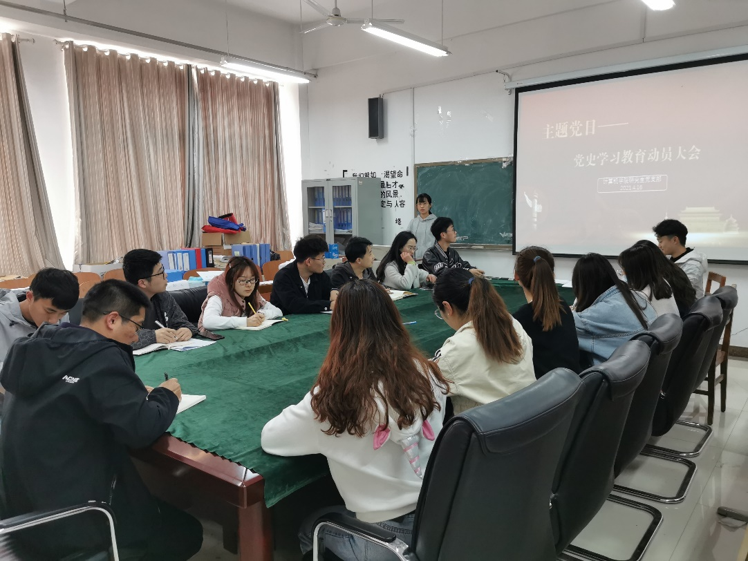 研究生党支部开展主题党日活动。活动由研究生党支部学习委员吴胜琪主持,党支部书记尚军亮老师和研究生党员参加本次活动。