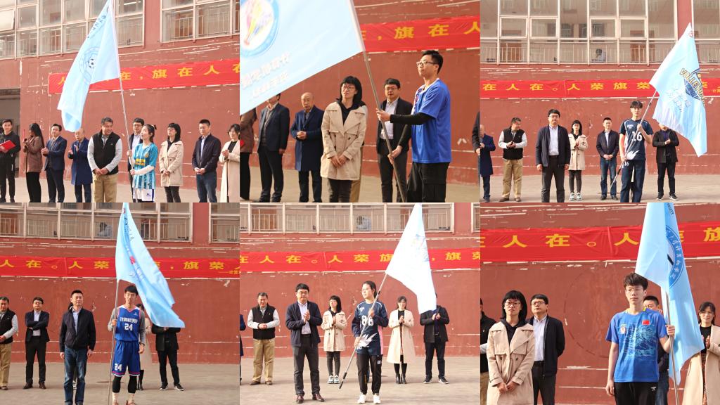 关于辅导员包带体育队伍的决定,并由姜付高、刘蓉、郑勇和姜振栋分别向男女子足球队、羽毛球队、乒乓球队、男女子排球队、男女子篮球队授旗。随后,队长代表和球队队员宣誓,他们表示:人在旗在,旗在人在,人荣旗荣,旗荣人荣,严格遵守比赛规则,赛出风格,赛出水平,努力为篮球直播吧