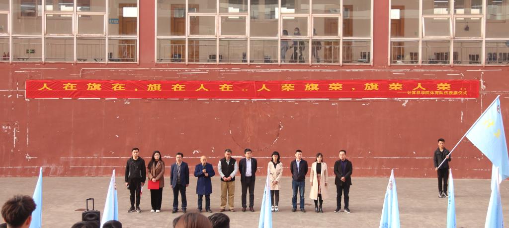 在阳光会场开展落实“三进”活动,强化体育队伍管理授旗仪式。曲阜师范大学体育教学部副主任姜付高、团委副书记刘蓉、学工处副处长郑勇、学工处教育科科长姜振栋、篮球现场直播