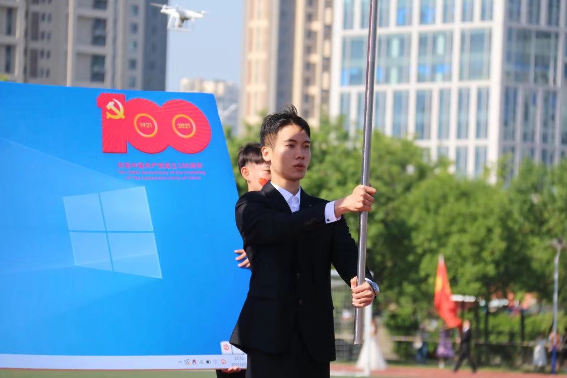 伴随着振奋人心的《运动员进行曲》,国旗护卫队精神抖擞,意气风发,阔步经过主席台接受领导和老师的检阅。随后,计算机学子身着蓝色院服踏着整齐划一的步伐,高举院旗走向主席台,他们以整齐划一的步伐向大家展现了计算机学子特有的朝气,同时也向大家展示计算机学子的自信与热情。“扬帆起航,劈波斩浪。计算人才,编译未来。 ”的高亢嘹亮的口号向我们展现出昂扬的精神风貌。方队入场后,进行升旗仪式,五星红旗在全校师生的注目下冉冉升起。最后,全体师生共同观看开幕式文艺演出。我院学子表演青春向上的广播体操,表演者用自己的热情感染着现场的每一个人,更把整个开幕式的气氛推向高潮。