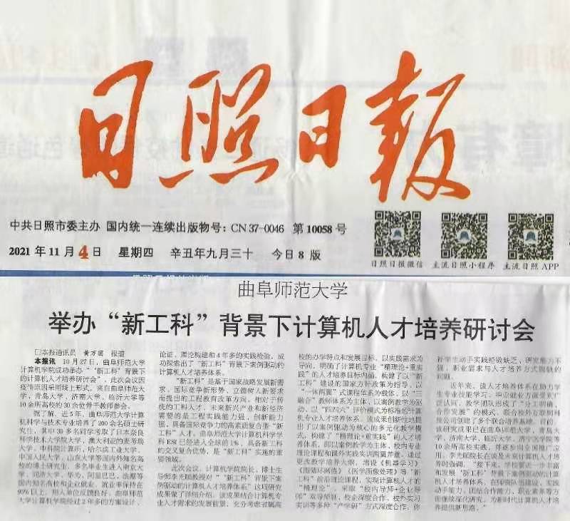 2021年10月27日,我院成功举办“新工科”背景下计算机人才培养研讨会。《日照日报》于2021年11月4日报道此次会议。