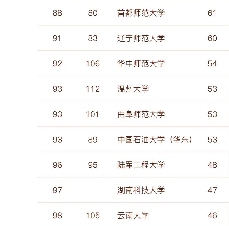 本次计算机科学与技术学科排名共有143所大学上榜。其中,我院计算机科学与技术学科是国家一流本科专业,已获批一级学科硕士授权点及学位硕士授权点。2021年3月计算机科学学科ESI排名进入全球前1%,2021年9月位于全国师范类高校第4位。
