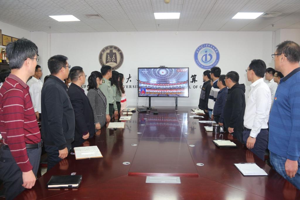 全体学生干部以及部分入党积极分子分别于E103、E105集中收看党的二十大开幕会直播,其余学生采取线上的方式自主观看,全院师生认真聆听大会开幕会内容。