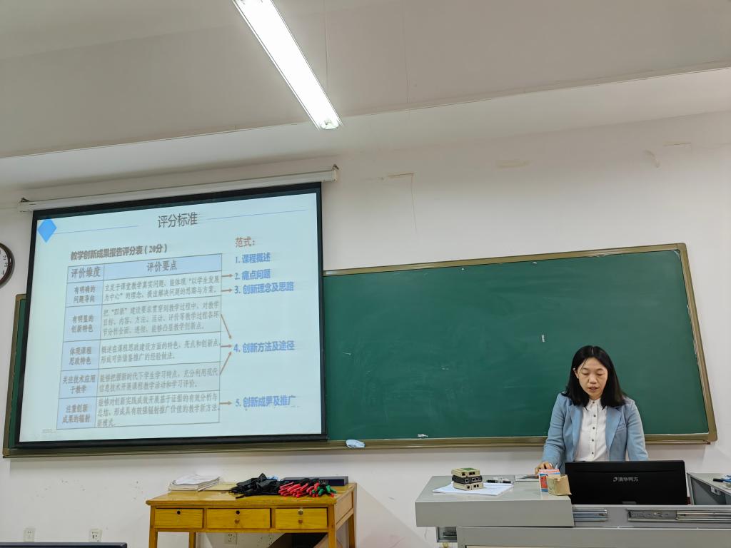 优秀教师代表分享了参赛经验。吴俊华老师和李圣君老师强调了教学创新设计的重要性、教学创新报告的重要性,要多打磨才能趋于完美。李凤老师提到,赛前精心准备的教学模具及其在课堂中模具的使用成为了教学比赛的亮点。教学比赛是平时课堂教学的升华与完美的呈现,只有基础扎实,多多打磨,才能胜券在握。