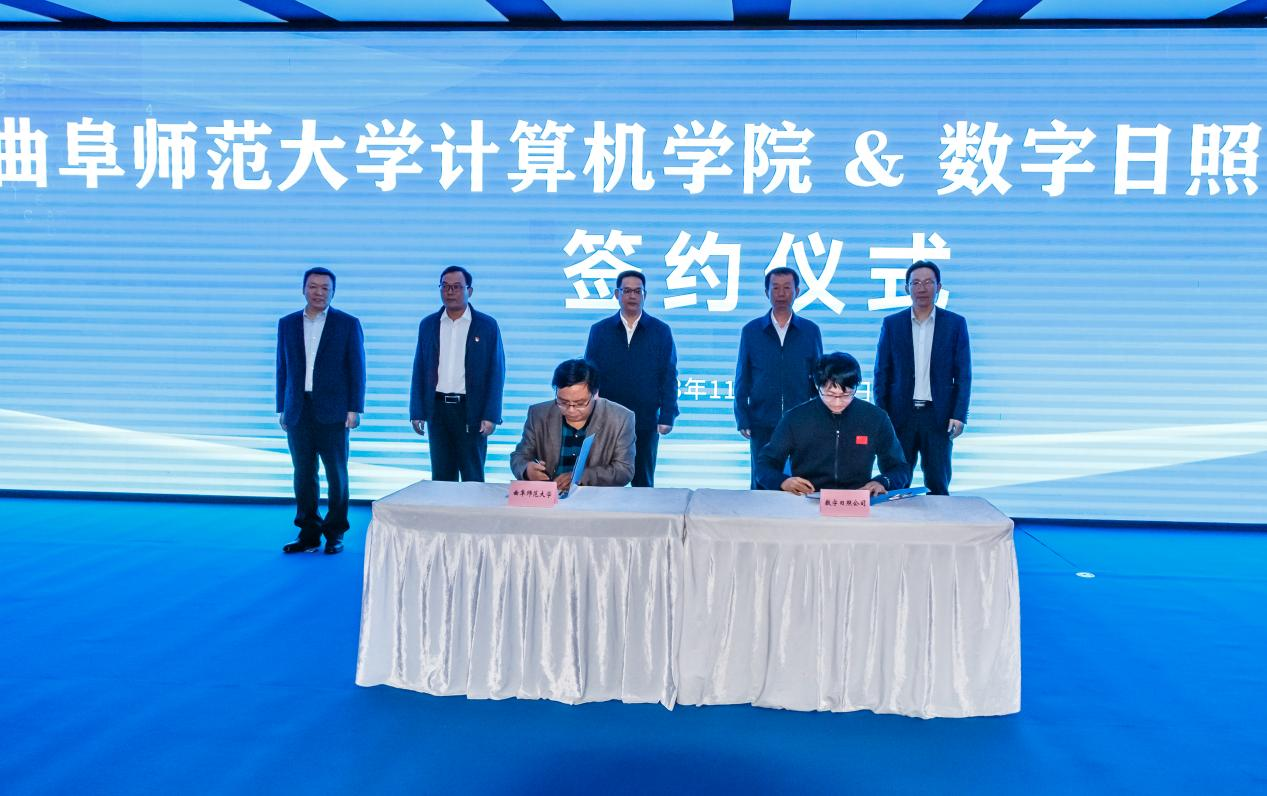 与数字日照有限公司举行教育实践基地签约揭牌仪式。曲阜师范大学党委常委、纪委书记、省监委驻曲阜师范大学监察专员路学堂,日照城投集团党委副书记邱兵,日照市大数据发展局副局长周彬彬,数字日照有限公司执行董事潘峰,篮球直播吧