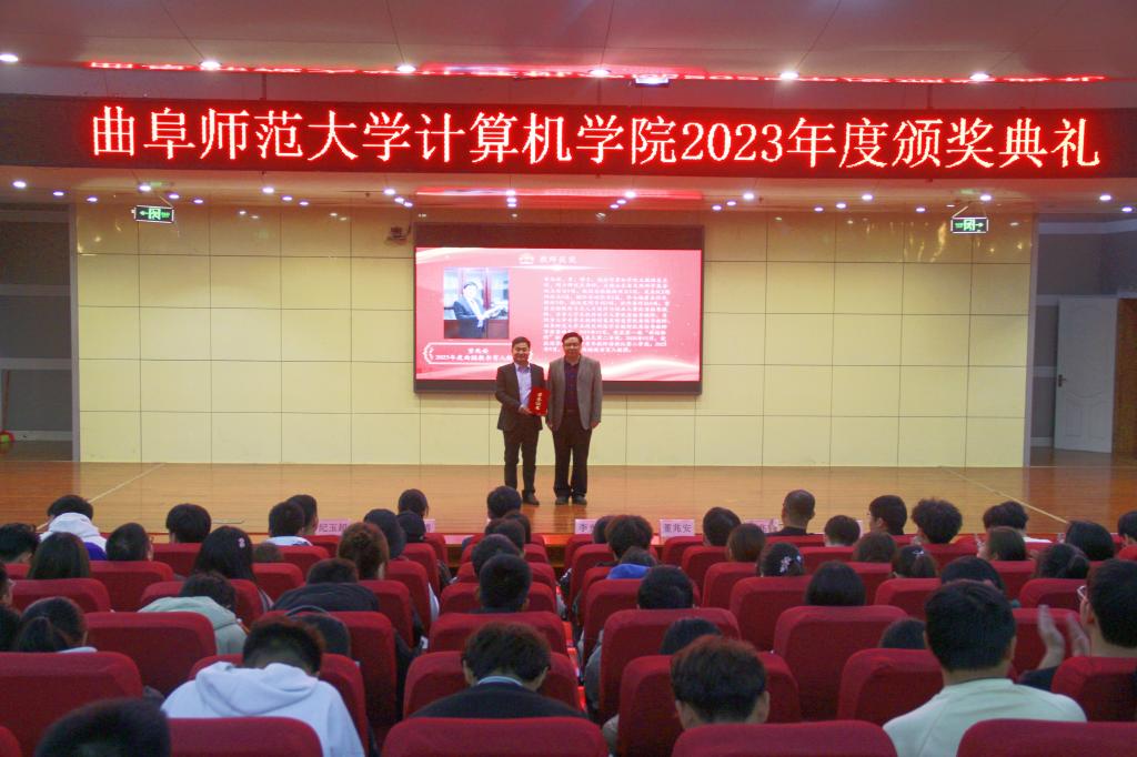 大会的第五环节,由李光顺院长为2023年度曲园教书育人楷模董兆安老师以及2023年度曲阜师范大学优秀教师马春梅老师颁奖。
