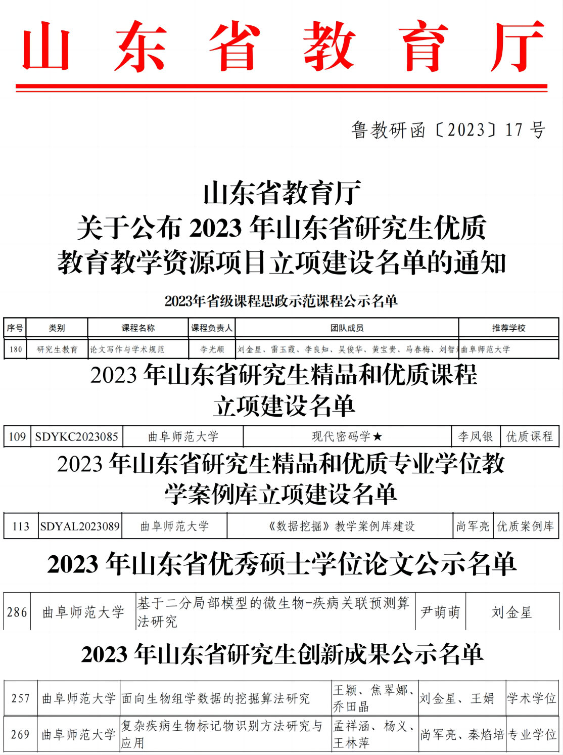 2023年12月29日,山东省教育厅公示2023年度山东省本科教学改革研究项目,李光顺教授主持的《基于OBE的计算机专业产教融合卓越人才培养模式创新与实践》山东省教改重点项目获批立项。我院同时获批校级思政示范篮球直播吧