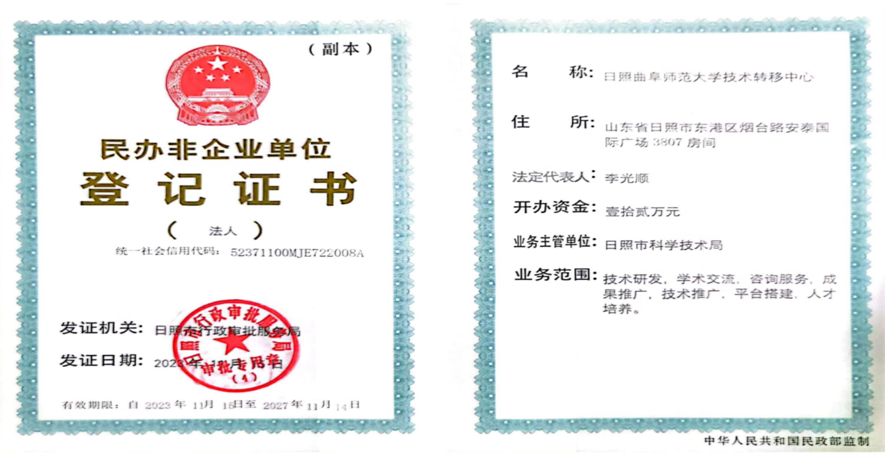 八、成立日照曲阜师范大学技术转移中心,科技成果转化取得新突破