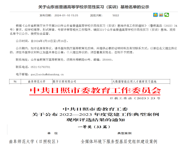 高质量发展。与数字日照有限公司共建教育实践基地并荣获山东省普通高等学校示范性实习(实训)基地,与山东大学篮球现场直播