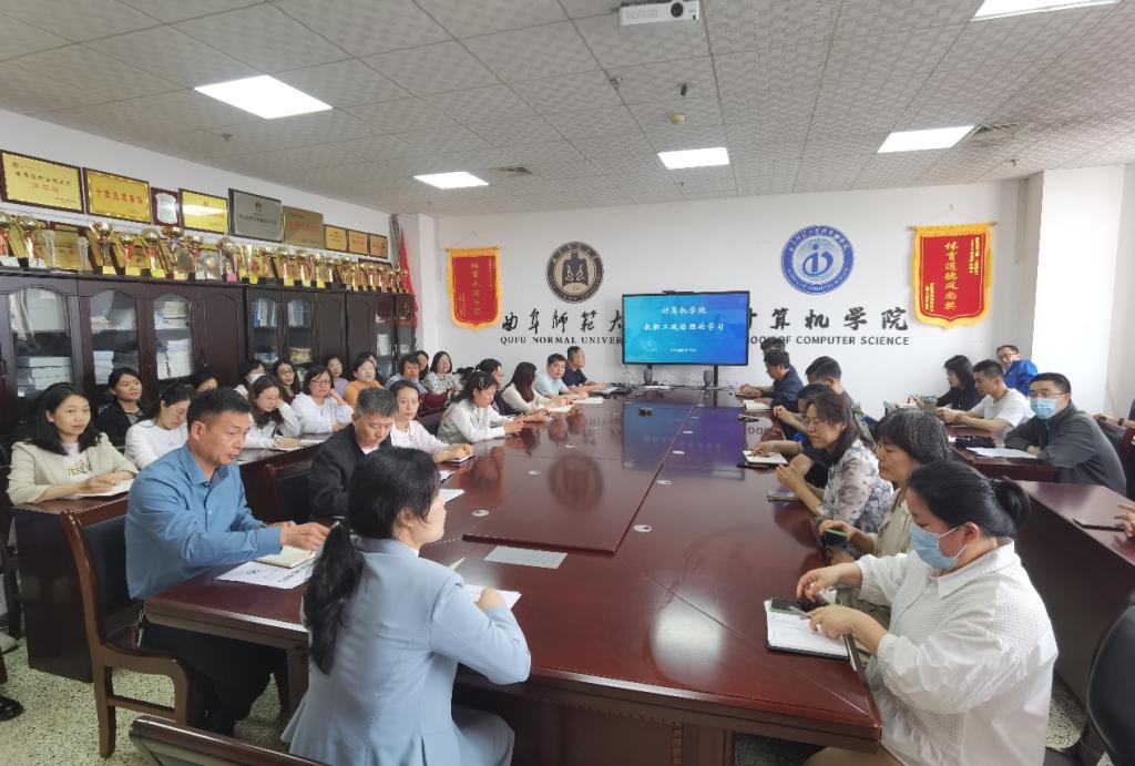 会上,教职工通过观看视频的方式认真学习习近平总书记对学校思政课建设作出的重要指示,张明洁进行领学并传达了学校党委书记邢光在学校学习贯彻习近平总书记“3·18”重要讲话精神暨党委理论学习中心组集体学习会议上的讲话内容,组织全体教职工深化学习了《曲阜师范大学课程思政实施方案》。