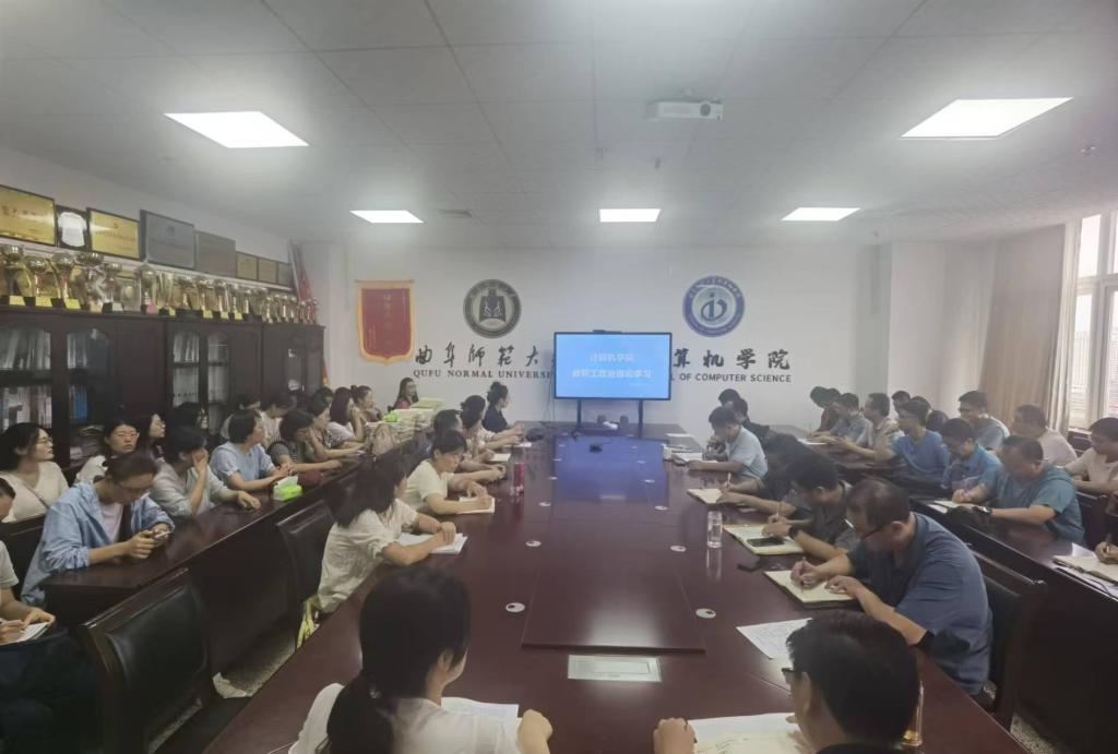 于JC1011召开教职工政治理论学习活动。党委书记张明洁主持活动,全体教职工参加。