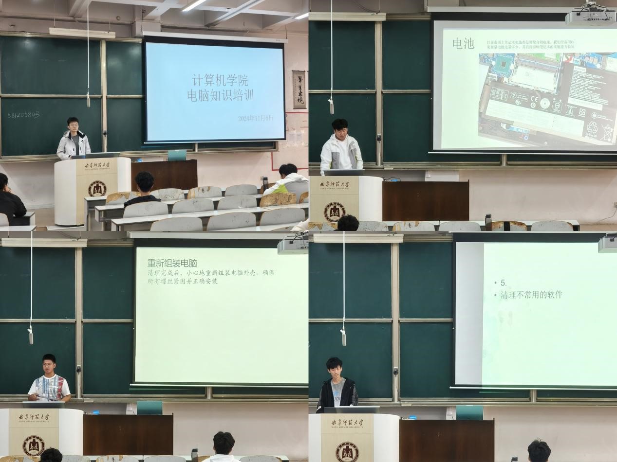 举办多场电脑知识讲座。讲座从电脑硬件的识别与功能介绍为切入点,引领大家深入探索电脑内部各个部件,为每位听众提供了一张复杂机器的精密构造图,便于大家能够清晰地认识到各个部分的功能及其在整个系统中的不可或缺的关键作用。同时,讲座传授了一系列经验方法,帮助大家应对在使用电脑过程中可能遇到的突发状况。