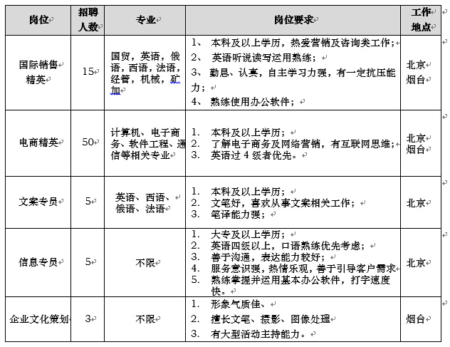 职位烟台(总部):(0535)3455011,林女士