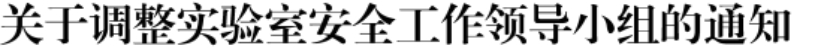 根据学校干部调整情况和工作需要,经学校研究, 对“实验 室安全工作领导小组”进行调整。 名单如下: