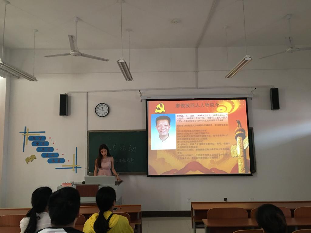 研究生党支部于2017年6月7日下午于JS410举行“向廖俊波同志学习”主题党日活动。本次会议由研究生党支部副书记张璐同志主持,研究生党员参加本次会议。