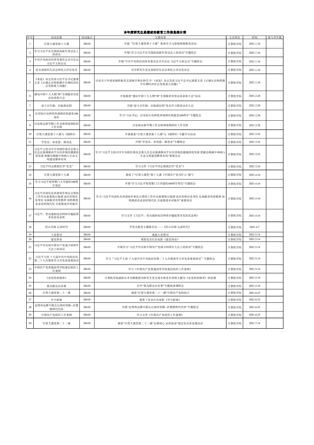 定期开展研究生思想政治理论学习,主题教育,掌握研究生思想状况,尤其加强对特殊群体研究生的重视(主要是家庭贫困、单亲、思想偏激、或有异常举动的学生),并且定期的深入学生群体中了解学生思想状况。