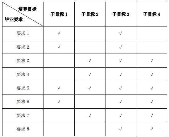 说明:毕业要求对培养目标子目标的支撑用“√”表示。