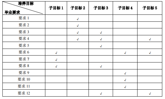 说明:毕业要求对培养目标子目标的支撑用“√”表示。